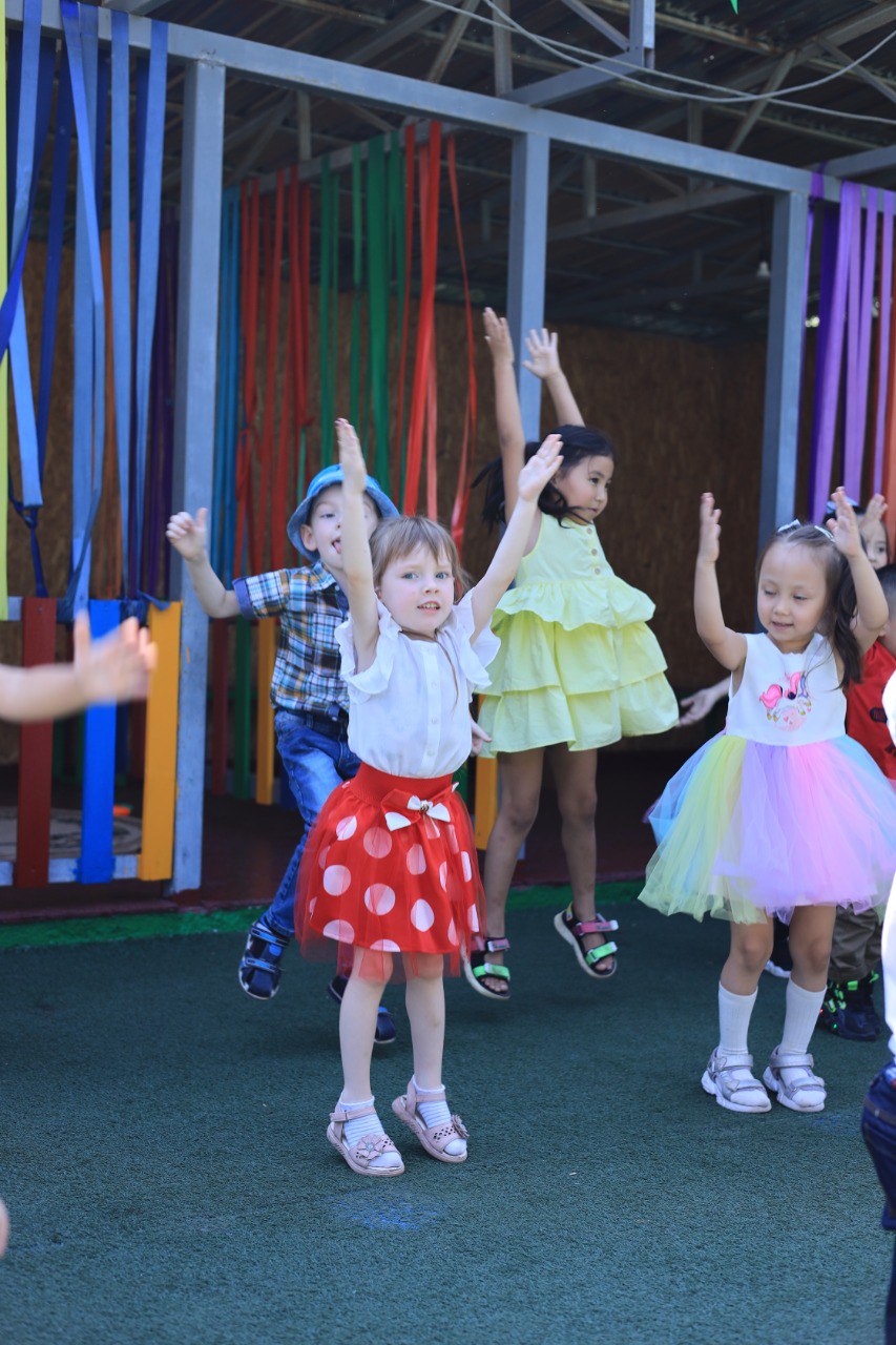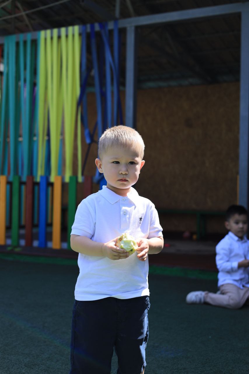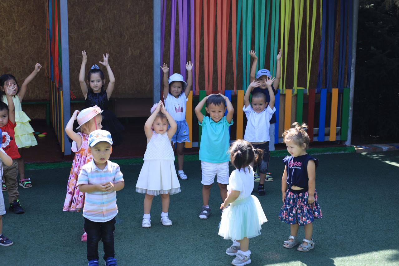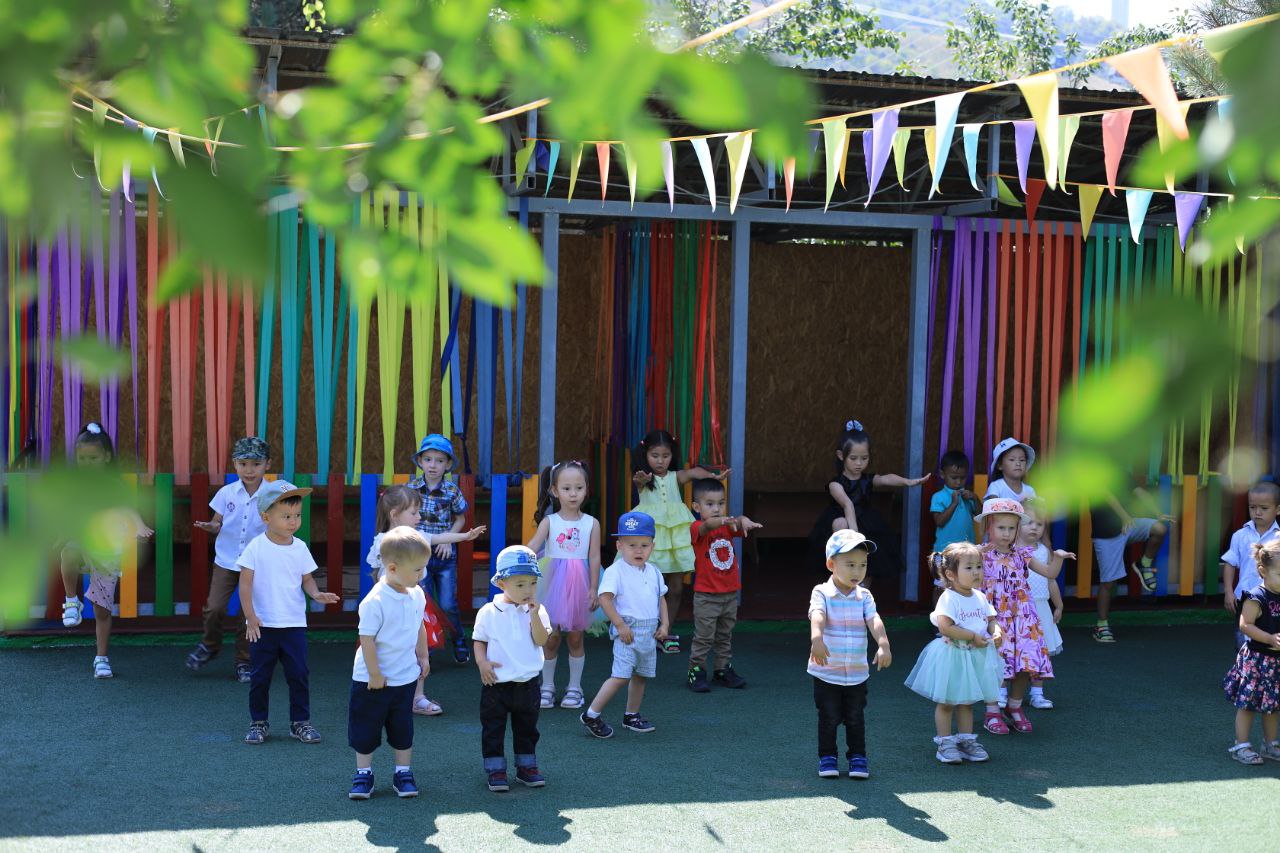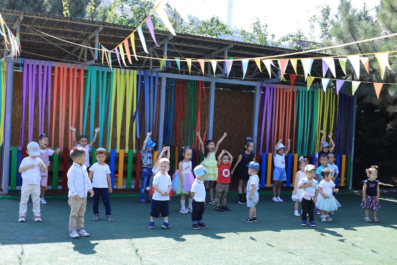 На детской площадке брусчатка, застелено газоновое покрытие для безопасности детей. Просторные детские беседки, позволяют проводить время на улице в любую погоду. Дети выходят на прогулку два, три раза в день. Воспитатели и нянечки прививают детям навыки самостоятельности и уважения друг к другу, уважение к старшим, забота о младших. Проводятся уртенники на праздники, где дети обучаются танцам и песням, знакомятся с народными традициями и национальными ценностями.