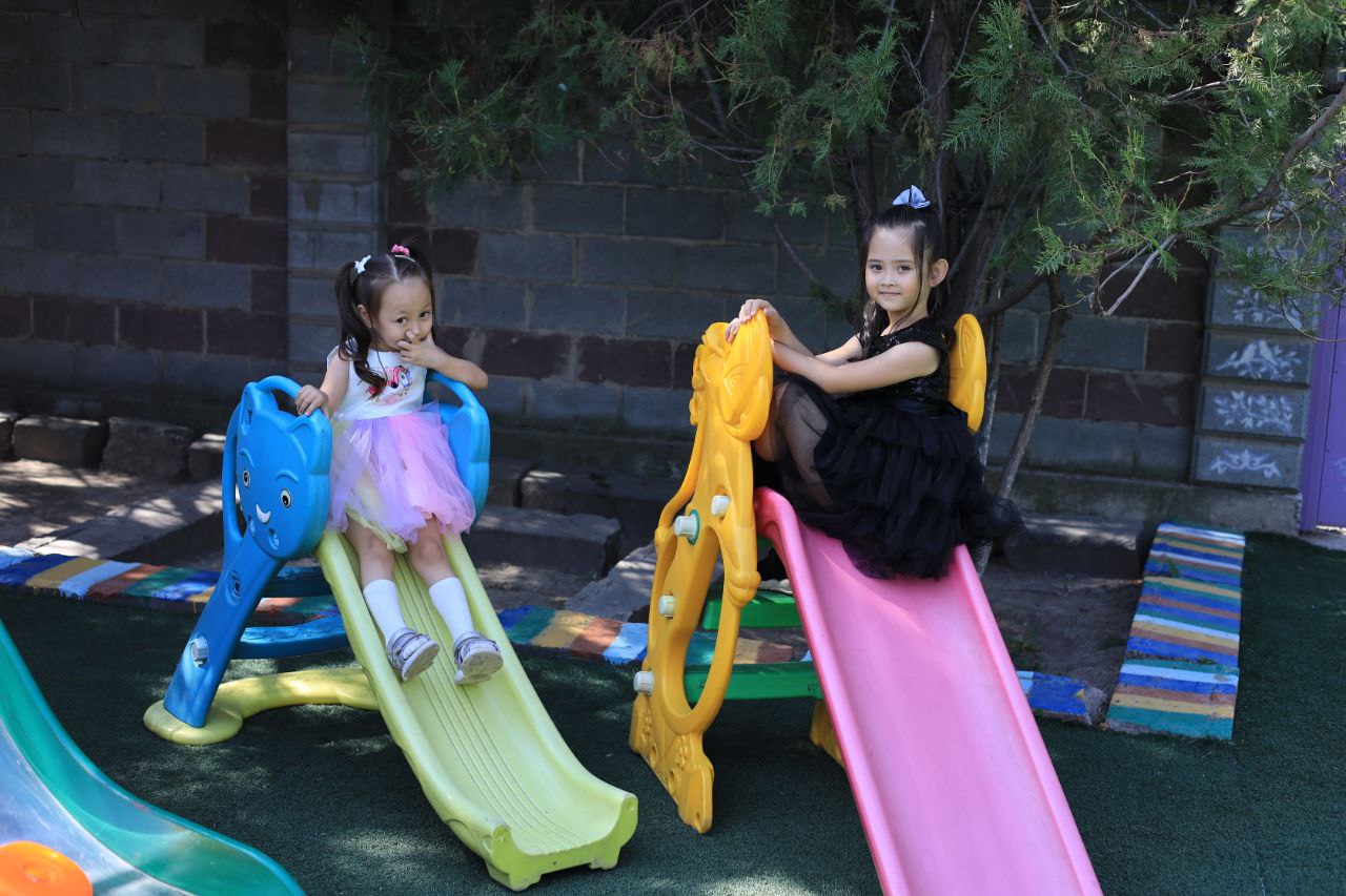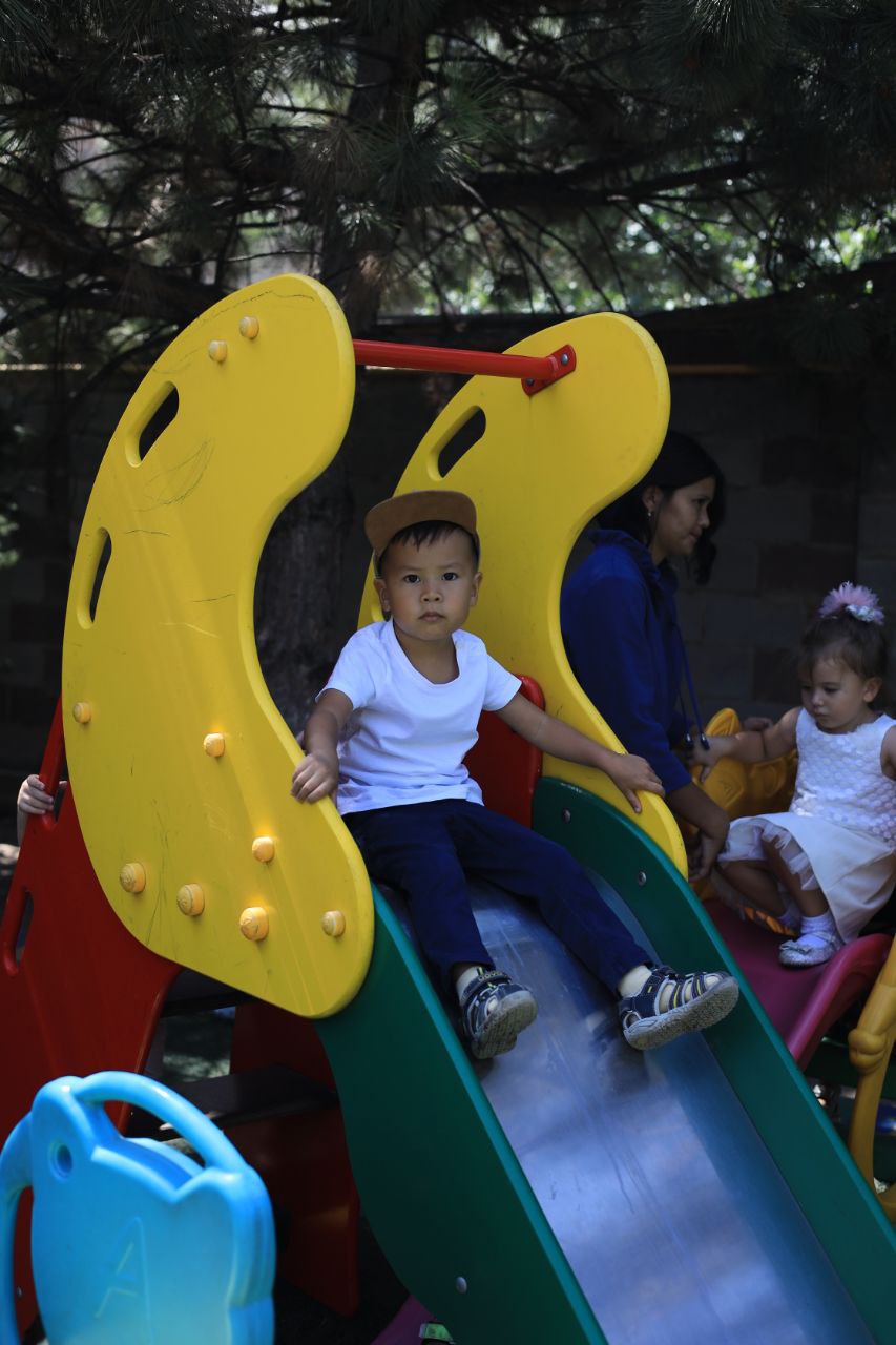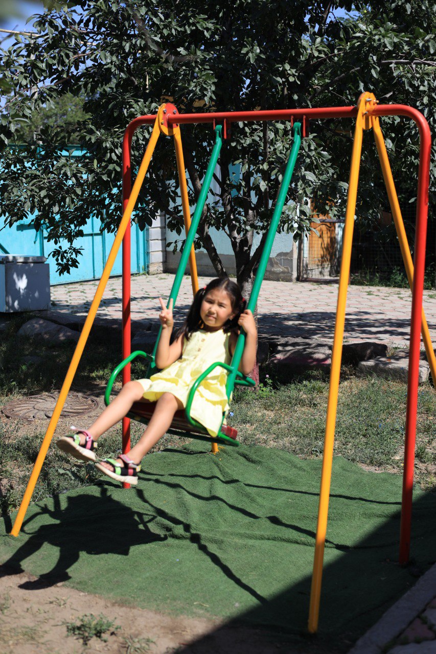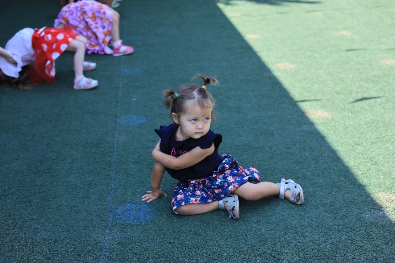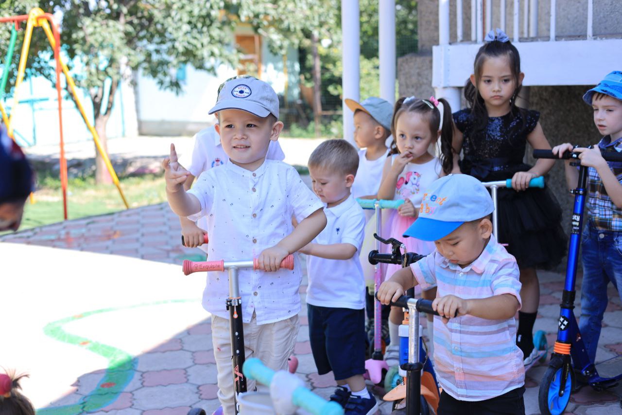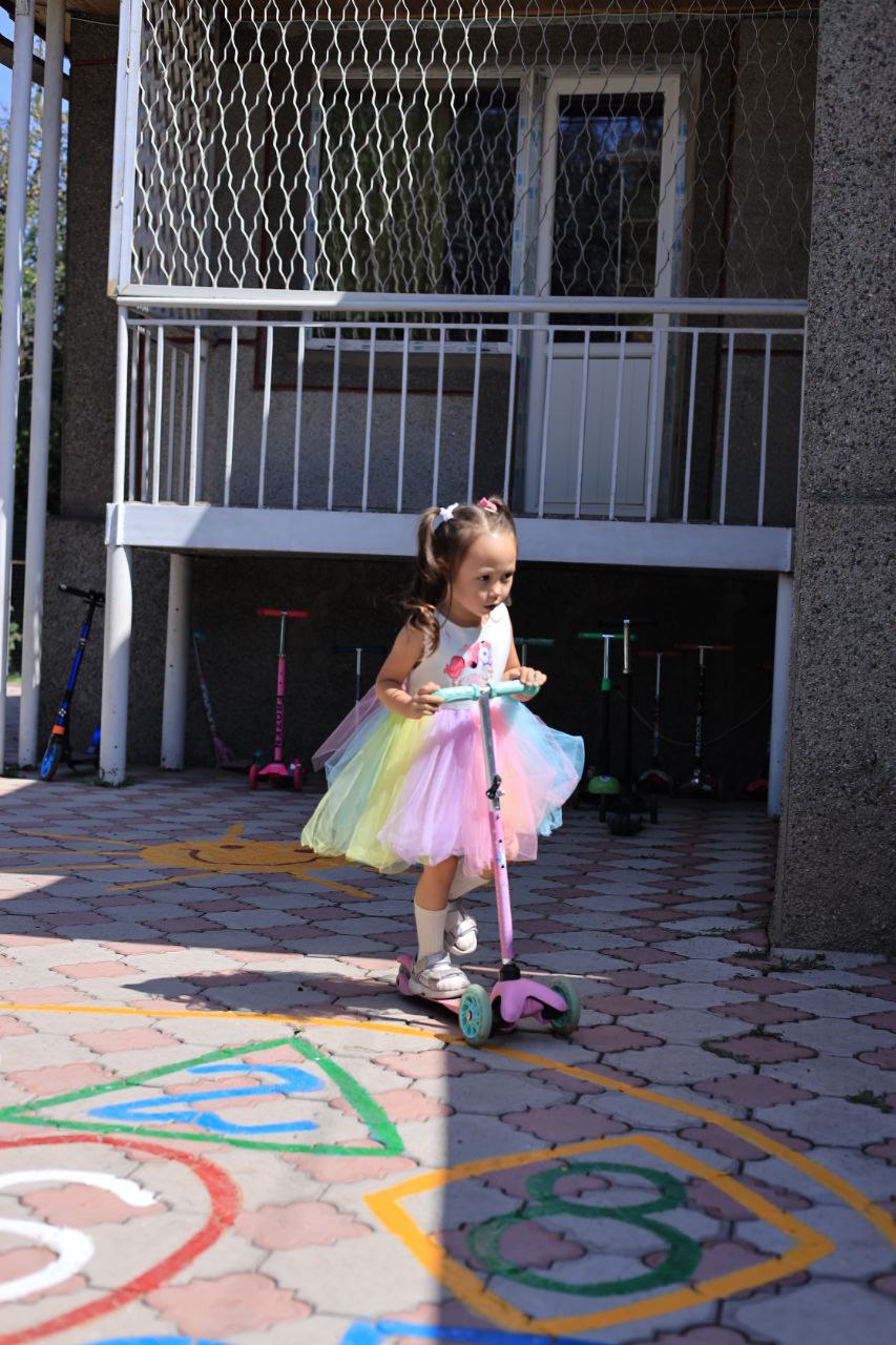 На детской площадке брусчатка, застелено газоновое покрытие для безопасности детей. Просторные детские беседки, позволяют проводить время на улице в любую погоду. Дети выходят на прогулку два, три раза в день. Воспитатели и нянечки прививают детям навыки самостоятельности и уважения друг к другу, уважение к старшим, забота о младших. Проводятся уртенники на праздники, где дети обучаются танцам и песням, знакомятся с народными традициями и национальными ценностями.